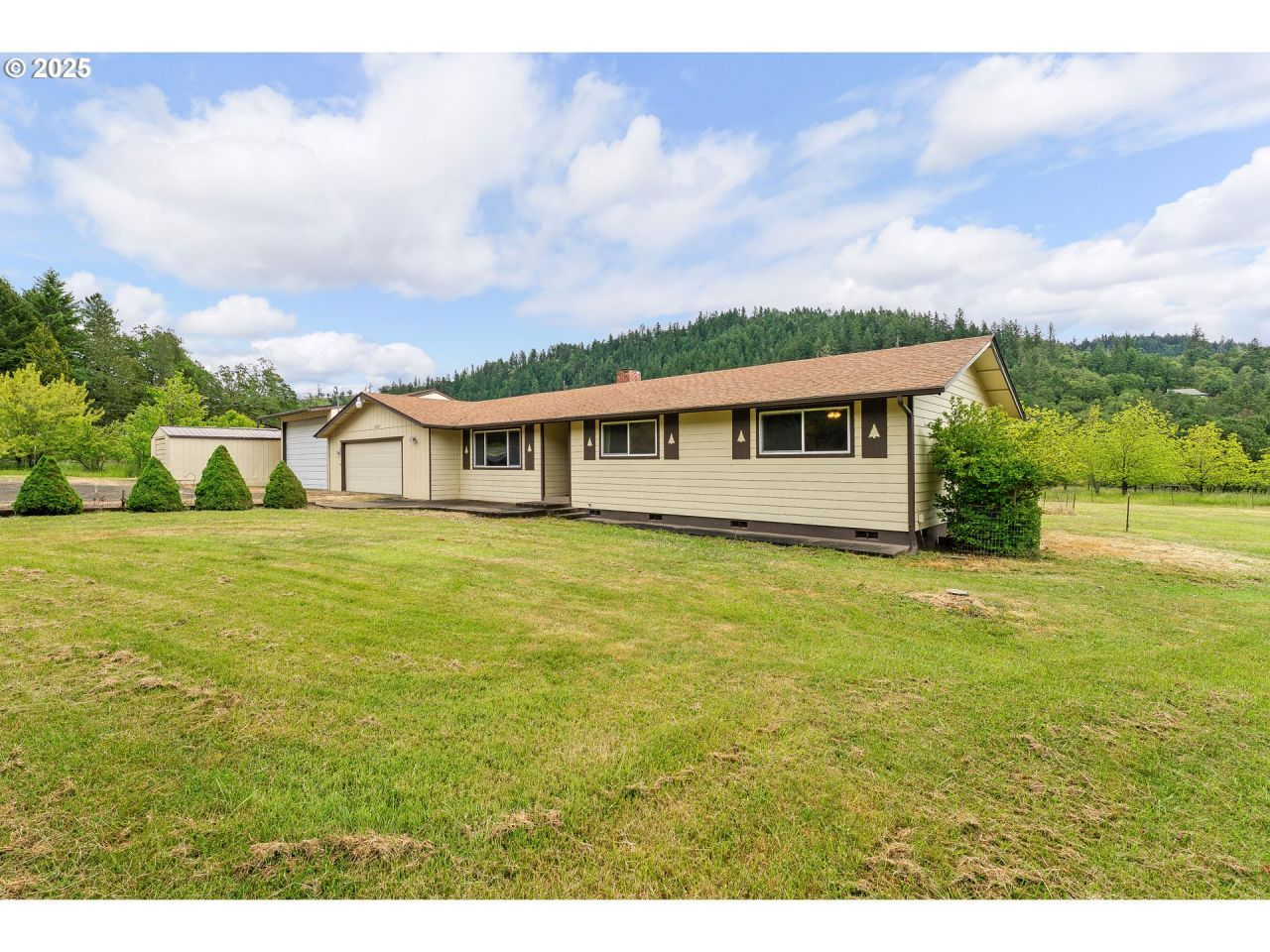 Riverfront property located on the North Umpqua River. Enjoy this peaceful setting just minutes from town. This single-story 3 bedroom/2 bath home with attached two-car garage and large enclosed shop or RV garage sits on 1.36 level acres and has easy access to the Umpqua River. Water rights. In-ground irrigation established. Don't miss this opportunity.