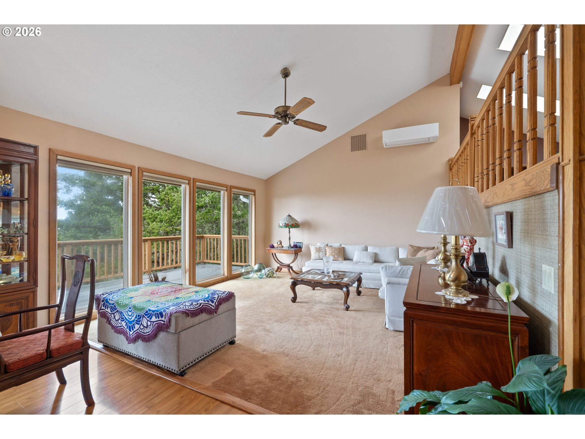 STR LICENSE TRANSFERABLE - HILLTOP OCEANVIEW panorama filtered by beautiful evergreen trees. High above the rooftops and far from tsunami hazard, this vintage 1981 classic features large, well placed windows and wrap-around decking designed to capture all facets of each beautiful coastal day from sunrise to sunset. Living room with vaulted ceiling includes a light bright loft with 3 skylights. Open kitchen with built-ins. Entry level bedroom. Huge family room down with bar and vintage woodburning cookstove. Abundant storage. Be sure to check out the huge area under the house for your future wine cellar.