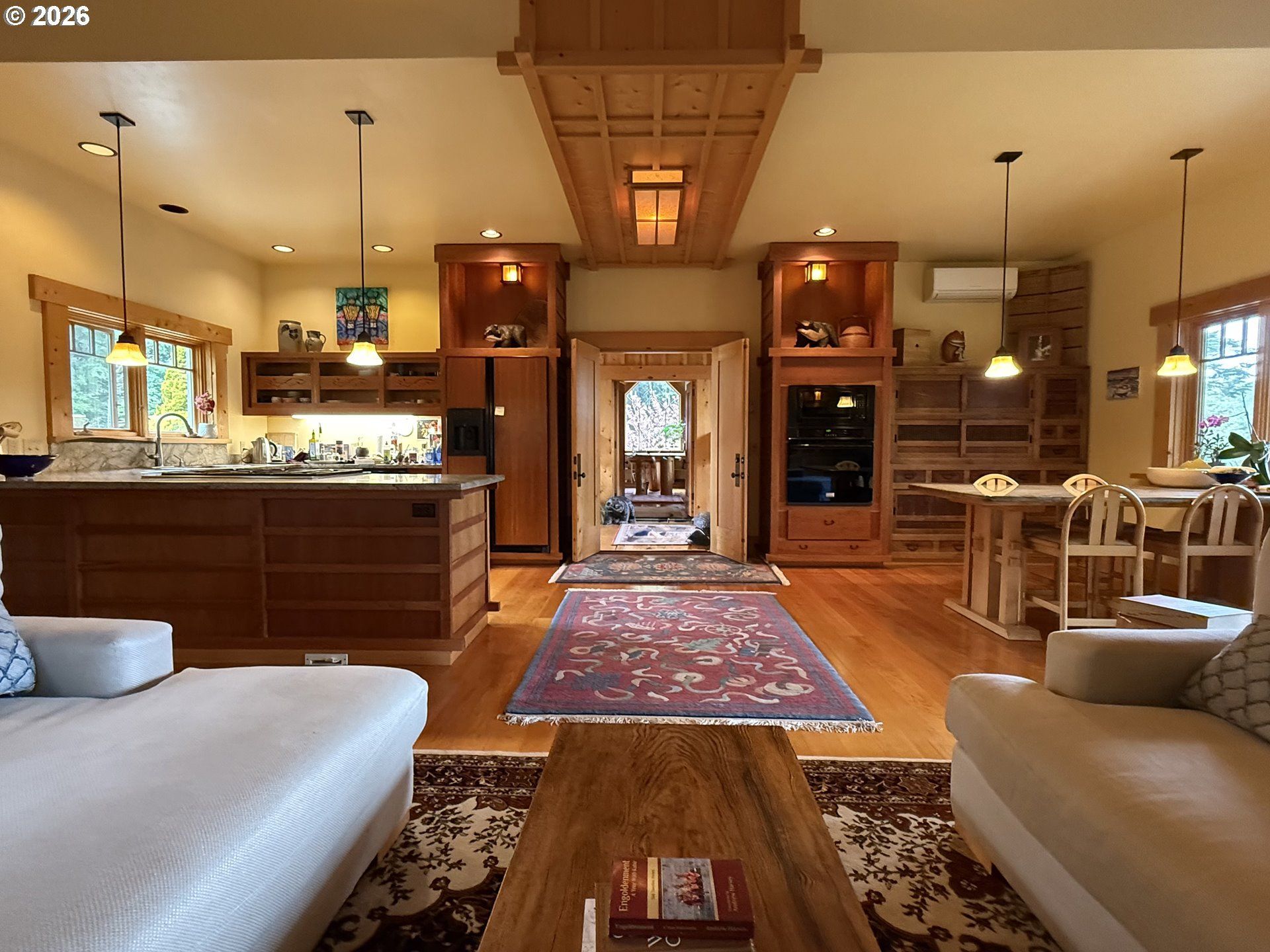 Perched on 42 pristine acres overlooking the Rogue River, this masterfully crafted estate blends architectural artistry with the untamed beauty of the Oregon coast. Surrounded by towering conifers, lush gardens, and meandering trails, the property offers unparalleled privacy, just a short distance from Gold Beach and the Pacific Ocean.Built entirely of local Port Orford Cedar, inside and out, the Japanese temple-inspired main residence is a showcase of meticulous craftsmanship. Vaulted, layered ceilings, 360? windows, and a dramatic stone fireplace define the living space, while a stone breezeway connects to the river-view porch, a library and study. The expansive master suite upstairs features a private fireplace, spa-like bath, and breathtaking views. Radiant floor heating and ductless climate control throughout, ensure comfort year-round.A glass Japanese greenhouse, crafted using traditional woodworking joinery techniques, sits beside the 2-bedroom guesthouse, while a caretaker's residence above a spacious workshop adds further versatility. Five fenced acres protect an abundant orchard of peach, apple, pear, fig, apricot, and kiwi trees, alongside raised beds, vibrant rose gardens, rhododendrons, Japanese maples, and a tranquil koi pond.With an abundant well (30+ GPM), low-tax forest grazing land, and direct access to nature, this extraordinary retreat is a rare fusion of seclusion, beauty, and refined living.